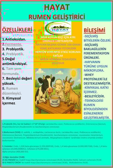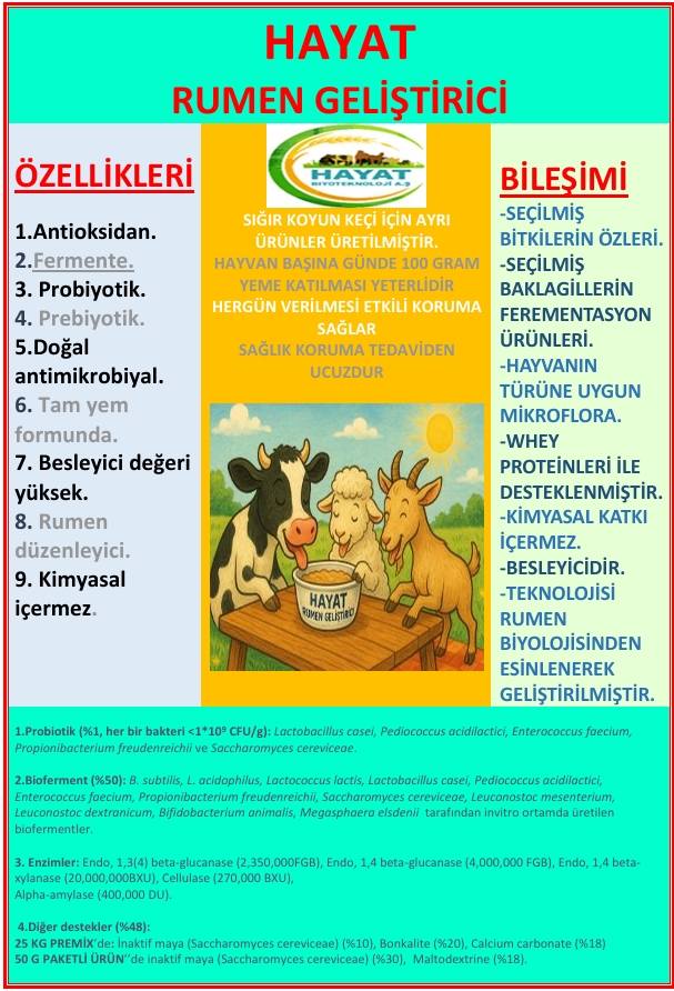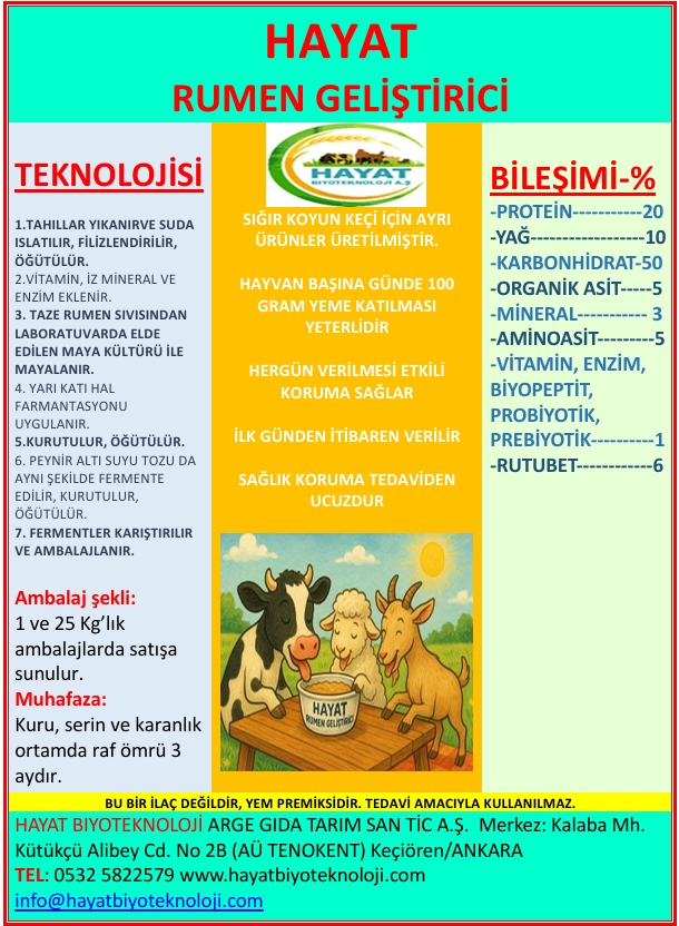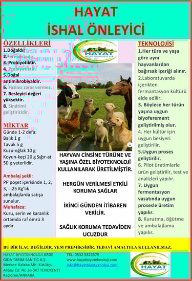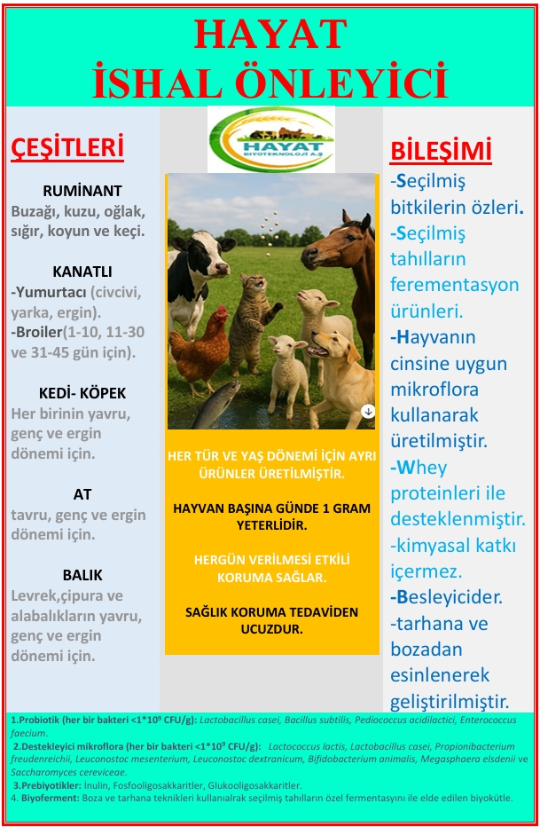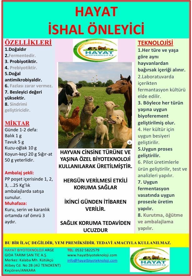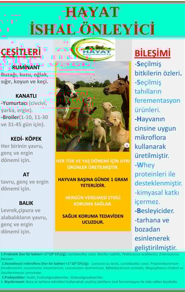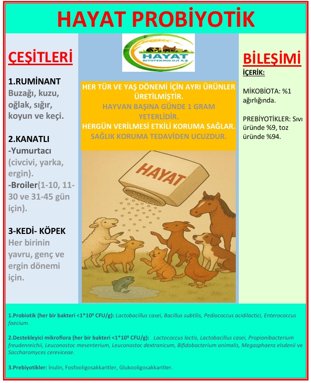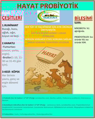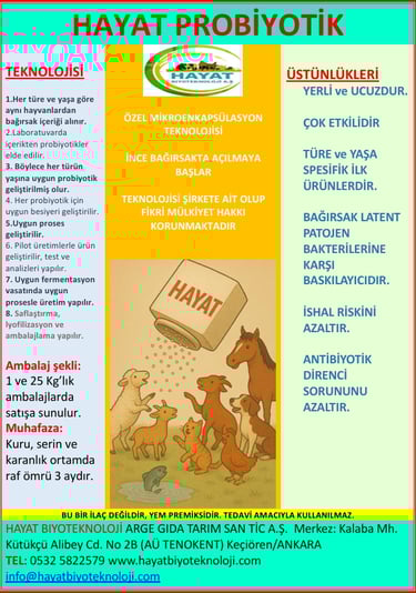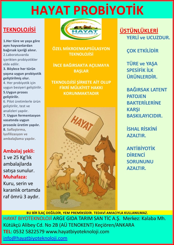 Geleceğin teknolojileriyle üretilen probiyotikler, ishal önleyiciler, rumen düzenleyiciler, bit-pire; haşere, kene, sinek, koku önleyiciler...
